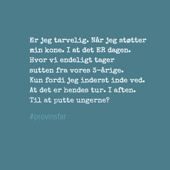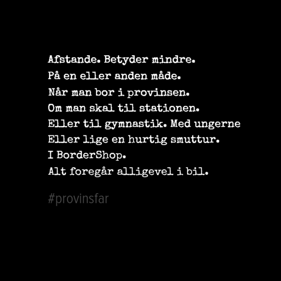 Kender I det der med at være presset. Af virkeligheden. Pendler. Toget. Igen forsinket. Køreledning. Sne. Blade. Varme. Påkørsel. Graffiti. Ny køreplan. Signalforvirring. Togbus. Motorvejskøer. Kan ikke følge med. Presset. Af institutionen. Arbejdsdag. Infomøde. Juleklip. Påskeklip. Forårsrengøring. Madpakker. Sukkerpolitik. Man skal sgu snak’ med børn. Spæner. Henter. Lidt over fire. Tom institution. Kan ikke hamle op. Presset. Af arbejde. Karriere. Deadlines. Tidsregistrering. Møder. Bagkant. Papirnusseri. Varm luft. Kan ikke rette ind. Presset. Af parforholdet. Nærvær. Kærlighed. Voksentid. Samvær. Fordufter. I bleskift. Forpligtelser. Rutiner. Manglende søvn. Planlægning. Presset. Af presset. Lægger mig lige lidt på sofaen og venter på at det går over.